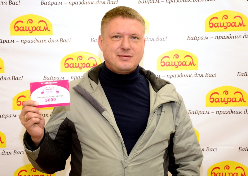 В октябре подарочные сертификаты на 5000 рублей от «Байрама» достались Ринату Ахнафовичу Хазимарданову, Аделине Вакилевне Ризвановой, Артему Владимировичу Иванову, Валерию Александровичу Буке и Флюзе Нурулловне Гумеровой.