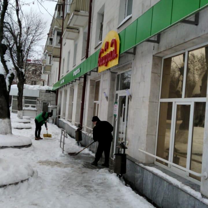 В условиях самых сильных в эту зиму снегопадов сотрудники «Байрама» не пожалели сил для того, чтобы пешеходы улиц, на которых расположены наши магазины, не испытывали лишних затруднений. Снежные заносы заставили коммунальные службы города все силы направить на расчистку наиболее оживленных трасс и улиц. При этом некоторым проездам и дворам приходилось ждать своей очереди. Во дворах на помощь коммунальщикам пришли жители некоторых домов, тротуары помогали расчищать работники учреждений. Для персонала магазинов «Байрам» уборка прилегающей территории в течение всего года является делом необходимым и привычным.